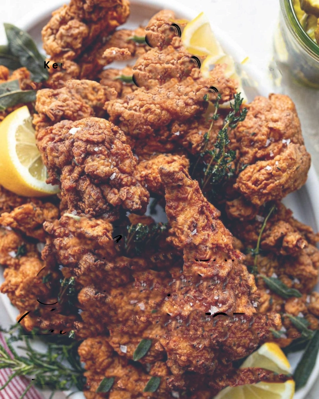 Crispy Buttermilk Lemon Pepper Fried Chicken • Creamy Mac & Cheese • Fennel & Broccoli Slaw • Thyme Biscuits